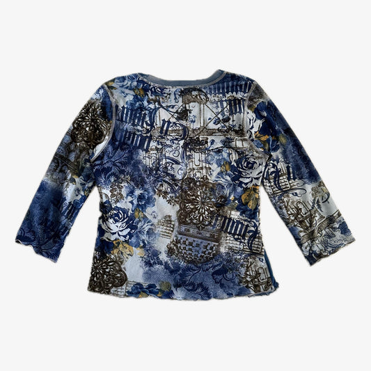 Graphic Ocean Blue Mesh 3/4 Sleeve Top (M)