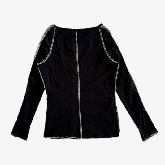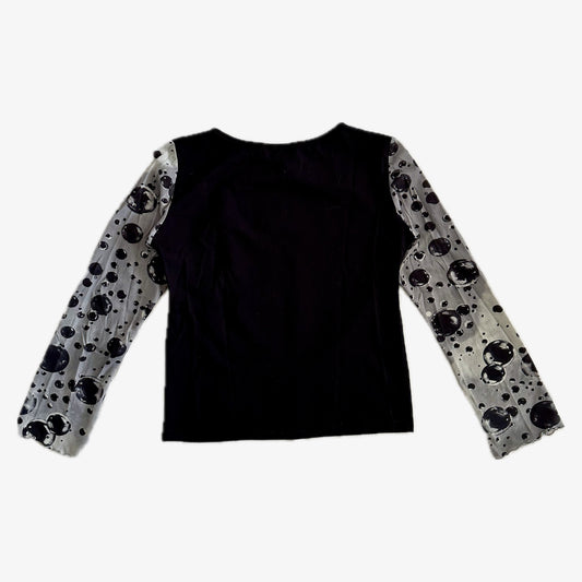 UitverkochtGraphic Black Top With Mesh Long Sleeves (XS)