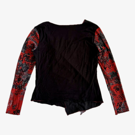 Black and Red Asymmetric Graphic Long Sleeve Top (M)