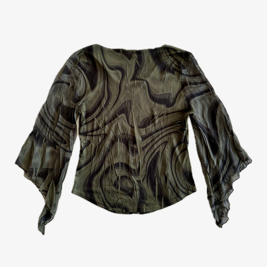 Soft Green Y2K Zebra Print Long Sleeve Top (M)